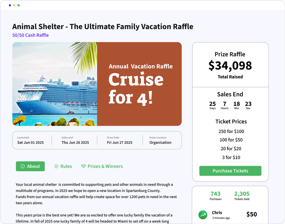 - Manage multiple prizes and multiple winners through your Rafflebox dashboard.
